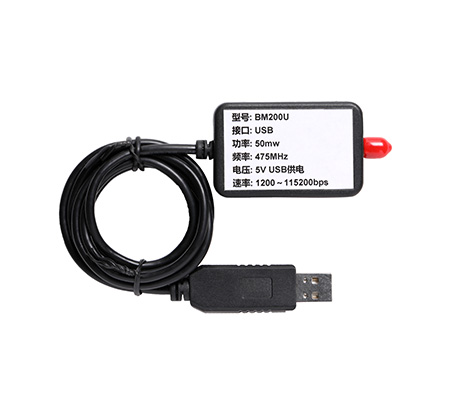 BM200U模块是高度集成半双工微功率无线数据传输模块,嵌入高速单片机和高性能射频芯片。BM200U模块采用高效交织纠错算法,具有抗干扰和高灵敏度等特点。BM200U模块提供了多个频道的选择,可在线修改串口速率,发射功率,通信速率等各种参数。BM200U模块能够透明传输任何大小的数据,而用户无须编写复杂的设置与传输程序,同时小体积、较远传输距离,USB接口供电USB接口数据传输,丰富便捷的配置功能,能够应用非常广泛的智能化通信领域。