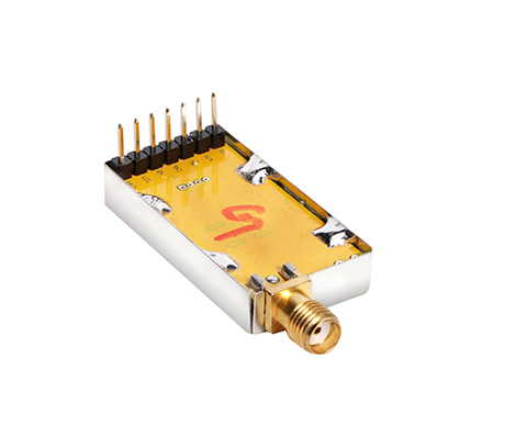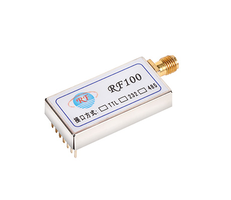 RF100??槭切乱淮亩嗤ǖ狼度胧轿尴呤??,其可设置众多的频道,步进精度为1Khz,发射功率高达20mW,而仍然具有较低的功耗,体积37.5mm x 18.3mm x 7.0mm,非常方便客户嵌入系统之内。